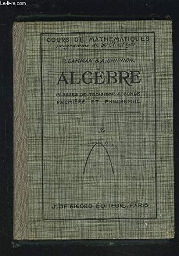 R200034559. ALGEBRE - CLASSES DE TROISIEME, SECONDE, PREMIERE ET PHILISOPHIE.. 1936. In-12. Broché. Etat d'usage, Couv. convenable, Dos satisfaisant, Intérieur acceptable. 266 pages. Papier contre collé sur la première et dernière page.. . . . Classification Dewey : 372.7-Livre scolaire : mathématiques