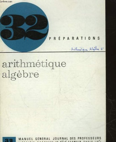 RO30057950. 32 PREPARATIONS - N°32 - ARITHMETIQUE ALGEBRE. 1964. In-12. Broché. Bon état, 1er plat abîmé, Dos satisfaisant, Intérieur frais. 63 pages. Ecriture discrète en première de couverture.. . . . Classification Dewey : 372.7-Livre scolaire : mathématiques